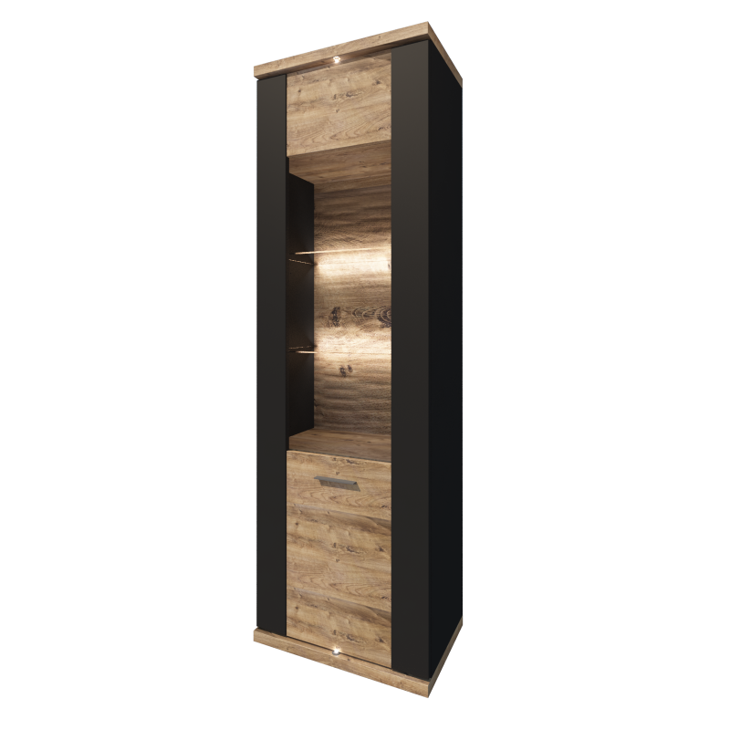 Produkt: vitrína MANHATTAN TYP 02 Čierna matná Čierna matná Dub ribbek koňak